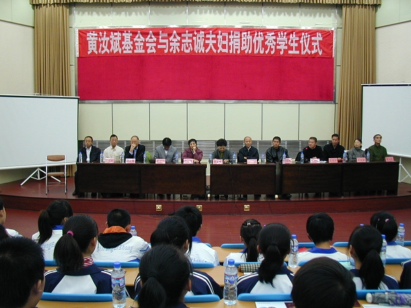 余志誠先生首先就基金會和本次捐贈的具體事宜向同學們做了說明,隨后為受助學生頒發(fā)資助助學金。邵培珍女士講述了黃汝斌先生一生創(chuàng)業(yè)的感人事跡,鼓勵同學們以黃汝斌先生為榜樣認真學習,珍惜時光,用優(yōu)異的學習成績回報捐助人,回報社會。受助學生代表李文博發(fā)言,表達了受助學生的感恩之情和努力學習,做德才兼?zhèn)涞膬?yōu)秀學生,回報祖國的決心。最后同學們向到場嘉賓鞠躬表示他們最誠摯的感謝。