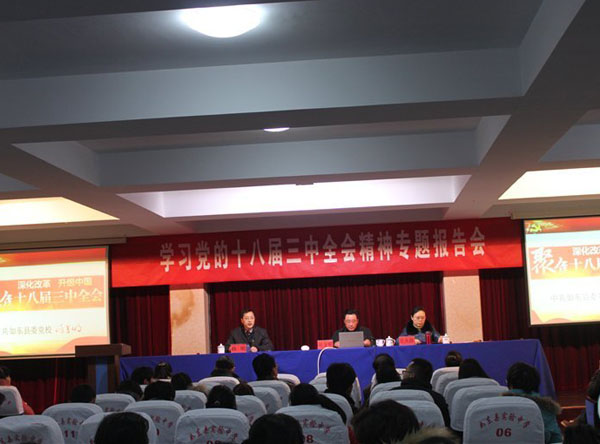 此次報(bào)告會(huì)是我校黨員學(xué)習(xí)貫徹十八屆三中全會(huì)精神的活動(dòng)之一,也是黨委組織的黨課活動(dòng)的內(nèi)容。