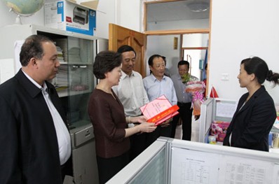9月6日新學期開學第一天,烏魯木齊市副市長張愛華、烏魯木齊市委秘書長李浩、烏魯木齊市教育局書記斯地克?牙生、烏魯木齊市教育局局長胡軍海、烏魯木齊市教育局辦公室主任劉付錫等領導一行來到烏魯木齊市第六十八中學,為我校三名獲得2013年第29個教師節(jié)榮譽稱號的老師送獎到校園。我校郝毓琪書記、韓勝利校長陪同一起為獲獎的老師送榮譽。