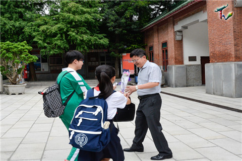 一聲聲“祝老師教師節(jié)快樂”在執(zhí)信校園里響起。同學(xué)們莊重地獻上禮物,臉上盡是微笑。老師們驚喜地接過禮物,臉上也是微笑。校門口還時常走過一些拿著花或小禮物的同學(xué),臉上也是期待的微笑。今天,崇德瀹智之門下,是一張張笑臉。