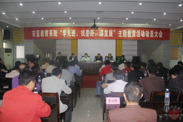 2010年10月11日下午,市教育局召開在市直教育系統(tǒng)深入開展“學(xué)先進(jìn)、找差距、謀發(fā)展”主題教育活動(dòng)員大會(huì),我校和長青小學(xué)、城北幼兒園代表市直中學(xué)、小學(xué)、幼兒做典型發(fā)言,校長黃余平代表學(xué)校做了精彩發(fā)言。黃校長從抓好“學(xué)”“找”“謀”三個(gè)字,談?wù)劵顒?dòng)的打算和做法。