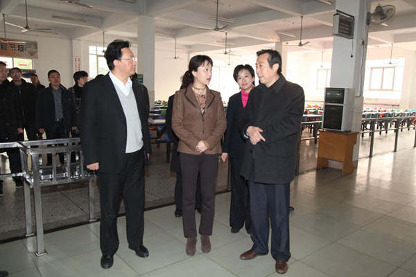 2014年1月17日,市委常委、紀(jì)委書記唐小英一行考察我校食品衛(wèi)生安全工作。市政協(xié)副主席、市教育局局長奚愛國、市紀(jì)委副書記劉秋萍、市食品藥品監(jiān)督管理局局長趙云燕、校長蔣建華陪同。