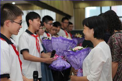 在歡快的音樂聲中,九年級畢業(yè)典禮拉開了序幕,金文清校長首先致辭, 她對四年來同學們的成長蛻變如數(shù)家珍,娓娓道來、深情流露,在表達對同學們順利完成初中學業(yè)的祝賀的同時,也表達了對青云學子今后成人成才的殷切期望。隨后,尹珍梅校長和教導主任賀婕老師向同學們頒發(fā)了畢業(yè)證書。接下來九年級師生紛紛在典禮中上臺獻演,載歌載舞一顯所長;六年級的同學們?yōu)榱俗YR九年級學長的畢業(yè),也以朝氣蓬勃的歌舞表演為典禮助興。陳素琴老師在典禮上代表九年級老師發(fā)言,她將滿滿的不舍和祝福傳遞到了每個學子的心中,引起全場師生的共鳴。各班學生代表向班主任老師們獻花的環(huán)節(jié)把氣氛推向了高潮,這一刻令人動容,千言萬語也道不盡對老師的感激之情,不少同學流下了熱淚。班主任老師們也紛紛抒發(fā)了對學生的殷殷期待,濃濃的師生情縈繞全場。最后,在同學們《送別》的悠揚歌聲中,九年級畢業(yè)典禮圓滿結束。