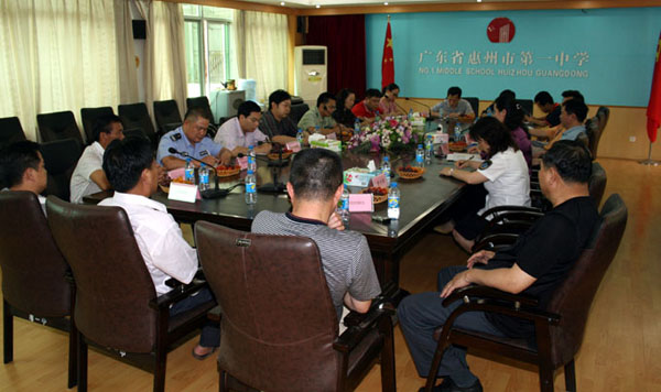 2010年5月11日下午,惠州一中新校區(qū)周邊環(huán)境安全工作協(xié)調會在行政樓二樓會議室舉行。會議由陳維亞書記主持。應邀參加會議的人員有:市衛(wèi)生監(jiān)督所王鋼副所長,河南岸辦事處彭副書記,城區(qū)消防大隊田副大隊長,江南交警大隊陳副大隊長,世紀置業(yè)公司苗副主任,馬莊派出所溫副所長、馬莊環(huán)衛(wèi)所楚副所長、冷水坑村邱支書、高布村賴支書、田心村郭副主任及我校正主任以上的全體領導干部。
