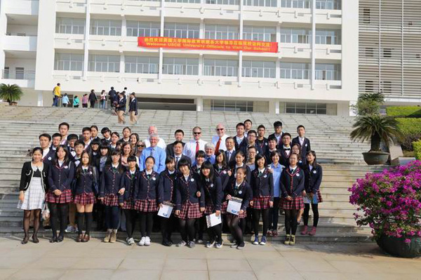 這是我校,也是柳州市乃至廣西的高中首次迎來多位美國高校的招生官員。那么這些美國高校為什么不遠(yuǎn)萬里來到柳高呢?這6所高校是美國大學(xué)國際教育聯(lián)盟(USCIE)的部分成員校,去年,該聯(lián)盟的駐中國辦公室在對中國各知名高中進(jìn)行遴選后向柳高發(fā)出建立生源基地的邀請函,其生源基地學(xué)校包括北京四中、東北師大附中、華東師大二附中等。美國大學(xué)國際教育聯(lián)盟將與我校保持長久的合作關(guān)系,定期組織雙方互訪及生源基地學(xué)校之間的交流。并為我校學(xué)生提供了靈活、快捷的直通車錄取方式以及優(yōu)厚的獎學(xué)金。