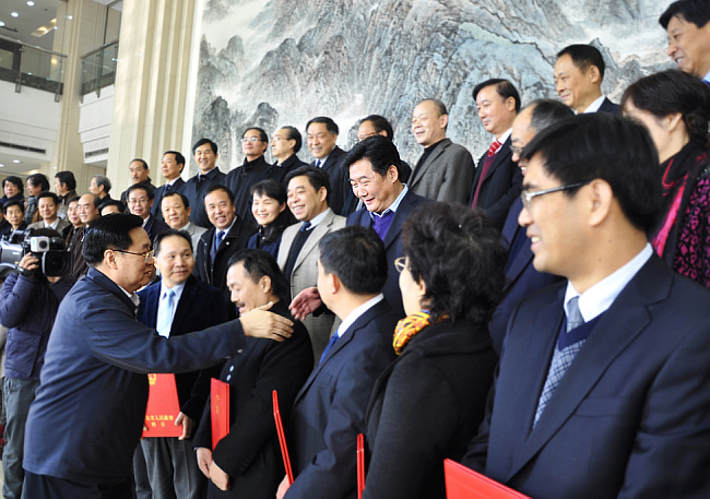王省長給李鴻朗校長頒發(fā)參事聘書