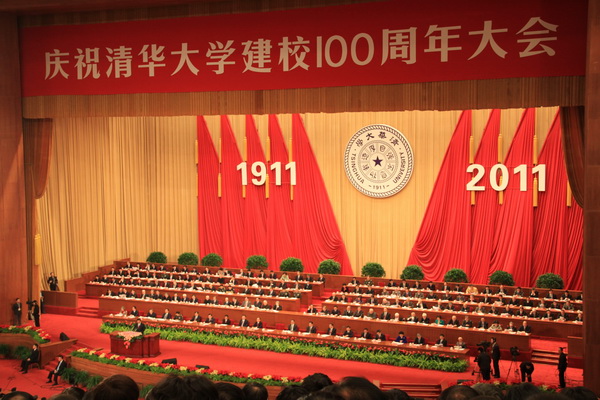 近日,慶祝清華大學(xué)建校100周年大會在北京人民大會堂舉行,黨和國家領(lǐng)導(dǎo)人胡錦濤、吳邦國、溫家寶、賈慶林、習(xí)近平、李克強(qiáng)等出席了大會,胡錦濤總書記發(fā)表了重要講話。