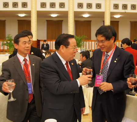 清華大學(xué)校長顧秉林院士(中)向校長們敬酒