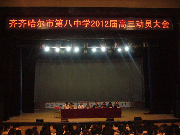 2012屆的高三復(fù)習(xí)備考早已拉開了序幕,為了進(jìn)一步統(tǒng)一思想,統(tǒng)一認(rèn)識(shí),統(tǒng)一目標(biāo),統(tǒng)一行動(dòng),9月4日我校在齊大文化宮隆重舉行了“走進(jìn)高三 精彩無限”高三誓師動(dòng)員大會(huì)。高三全體師生和家長參加了本次大會(huì)。
