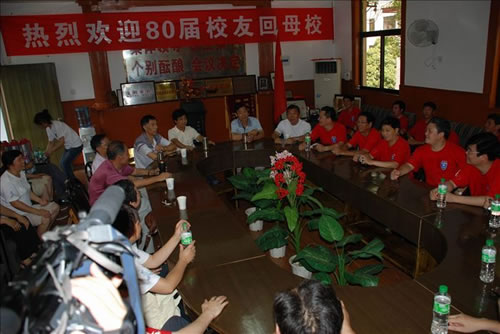 7曰24日上午9時(shí)30分,室外是赤日炎炎,而休寧中學(xué)會(huì)議室里是笑聲陣陣,掌聲連連,赤心濃濃。來(lái)自全國(guó)各地的休寧中學(xué)80屆文科班同學(xué)、老師和學(xué)校領(lǐng)導(dǎo)共45人,歡聚座談,深情致意,全體同學(xué)向母校濃情捐款,意趣盎然。