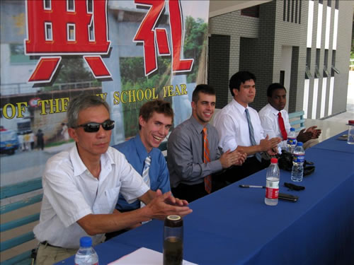 休寧中學(xué)2006年9月與美國“雅禮協(xié)會”簽訂協(xié)議,從此,“雅禮協(xié)會”每年派遣兩名耶魯大學(xué)優(yōu)秀畢業(yè)生來我校進(jìn)行英語教學(xué)。這不僅開創(chuàng)了安徽省中學(xué)聘請外教的先河,更為休寧中學(xué)英語教學(xué)的長足發(fā)展奠定了堅實的基礎(chǔ),郭皓潔和程似錦兩位同學(xué)在今年第十二屆全國英語創(chuàng)新大賽中分獲全國一、二等獎便是明證。