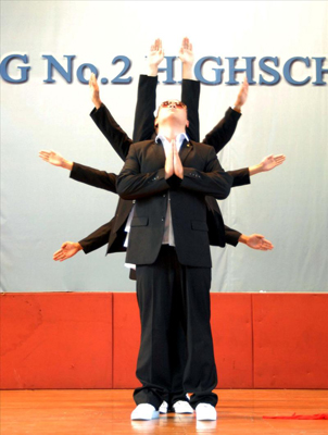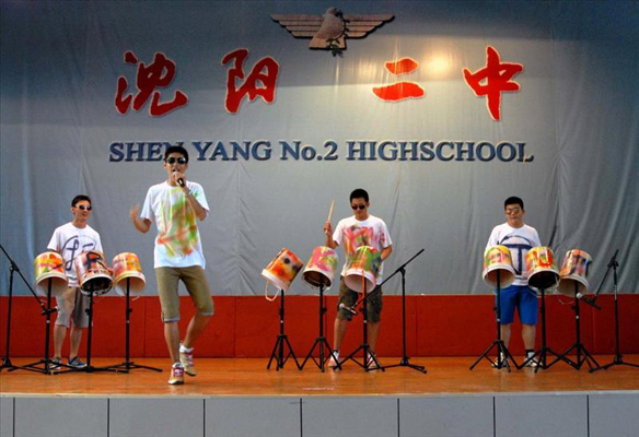 2013年7月5日,沈陽二中校園文化藝術(shù)節(jié)在我校體育館如期舉行。藝術(shù)節(jié)上主持人的默契配合,表演同學的精彩演出,臺下同學的積極互動,無不彰顯出我們二中人的素質(zhì)與風采。環(huán)保打擊樂的表演者別開生面地用廢舊空桶做成鼓,為同學們呈現(xiàn)出既有動感節(jié)奏又有現(xiàn)實意義的表演;小品則從演繹快慢、悲喜的角度出發(fā),為臺下同學帶來了陣陣歡笑;街舞社團的演繹激情四射;合唱團的演唱和諧悠揚;英文戲劇社的表演將觀眾剎那間帶入英倫生活。而本次藝術(shù)節(jié)最大的亮點在于老師們和同學們同臺演出,共譜文化經(jīng)典。生物組美術(shù)組老師舞蹈《茉莉花》溫婉優(yōu)雅,物理組老師《江南Style》帥氣活力,語文組化學組老師的詩朗誦高揚愛國情懷;更讓人驚喜的是沈陽二中校長、黨委書記劉輝的空降藝術(shù)節(jié)會場,親自獻唱《北京北京》深沉渾厚,深情涌動,讓全體觀眾長時間報以經(jīng)久不息的掌聲。在《當我們一起走過》的歌聲中,藝術(shù)節(jié)圓滿落下帷幕。本次藝術(shù)節(jié)不僅為同學們提供了展示自我、挖掘潛能的舞臺,更有效提升了我校校園文化的品位與內(nèi)涵。
