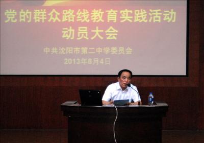 動員大會由沈陽二中黨委副書記、紀(jì)委書記、沈陽二中教育實踐活動領(lǐng)導(dǎo)小組常務(wù)副組長王爽旻同志主持。同時,并宣讀了“沈陽二中黨的群眾路線教育實踐活動實施方案”。她強調(diào)了學(xué)校開展教育實踐活動的總體要求、基本原則、主要任務(wù)、主要步驟、組織領(lǐng)導(dǎo)和要求。
