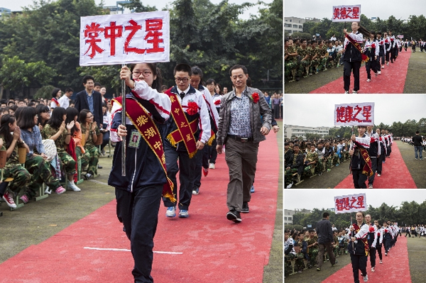 棠湖中學(xué)傳統(tǒng)星級(jí)學(xué)生的評(píng)選也在今天舉行。由全體師生民意選拔出來(lái)的“文藝之星”“勤勞之星”“美德之星”、“健康之星”、“學(xué)習(xí)之星”、“智慧之星”“棠中之星”在全體師生的祝福與掌聲中登上領(lǐng)獎(jiǎng)臺(tái)。校領(lǐng)導(dǎo)為他們頒發(fā)獎(jiǎng)杯。獲獎(jiǎng)學(xué)子家長(zhǎng)代表講話,表達(dá)了自己的喜悅和感激之情。