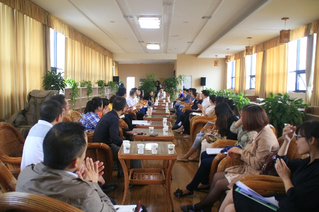 首先,任主任逐一介紹了今年新進(jìn)的教師和與會的領(lǐng)導(dǎo),并以今天陽光明媚的天氣預(yù)示新教師們將在我校擁有的光明前途和未來,從而拉開了此次座談會的帷幕。