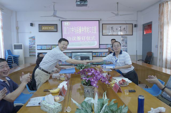 為進一步促進我市教育事業(yè)的發(fā)展,深入推進素質(zhì)教育,增強我校對外輻射作用,我校與集美區(qū)后溪中學(xué)建立了對口支援關(guān)系。7月1日下午,兩校對口支援協(xié)議簽訂儀式在后溪中學(xué)舉行。校領(lǐng)導(dǎo)及德育教務(wù)教科部門負責人參加了協(xié)議簽訂儀式。