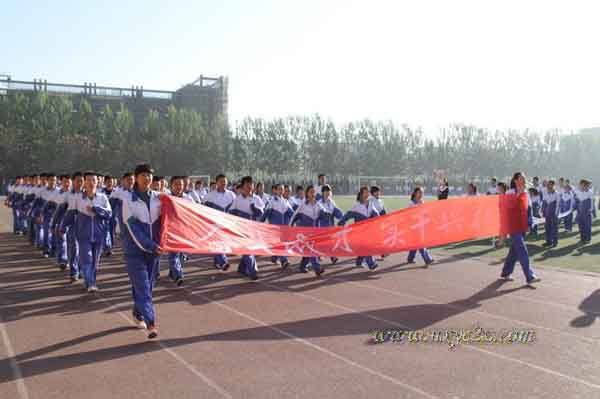隆重的入場(chǎng)式之后,銀川二中校長(zhǎng)劉喜林發(fā)表了熱情洋溢的致辭。致辭中,他首先代表本屆運(yùn)動(dòng)會(huì)組委會(huì)對(duì)大會(huì)的順利召開(kāi)表示熱烈的祝賀!向參加本次運(yùn)動(dòng)會(huì)的所有運(yùn)動(dòng)員致以最親切的問(wèn)候!向本次運(yùn)動(dòng)會(huì)的裁判員老師們致以崇高的敬意!他說(shuō),本次春季運(yùn)動(dòng)會(huì),是對(duì)我校體育工作的一次大檢閱,也是同學(xué)們個(gè)性特長(zhǎng)及運(yùn)動(dòng)風(fēng)采的一次大比武。他希望同學(xué)們?cè)诶蠋煹男燎诮虒?dǎo)下,不僅勤奮刻苦地學(xué)習(xí)科學(xué)文化知識(shí),也在堅(jiān)持不懈地鍛煉自己的身體,同時(shí),也在磨練自己的意志。最后,他代表學(xué)校衷心祝愿各班的體育健兒在運(yùn)動(dòng)場(chǎng)上奮力拼搏、一展雄姿,賽出競(jìng)技水平,賽出道德風(fēng)尚,賽出團(tuán)結(jié)友誼,充分展示二中學(xué)子的精神風(fēng)貌,并預(yù)祝本屆運(yùn)動(dòng)會(huì)取得圓滿成功。之后,運(yùn)動(dòng)員代表、裁判員代表分別向大會(huì)進(jìn)行宣誓。銀川二中副校長(zhǎng)王騁宣布了大會(huì)紀(jì)律。