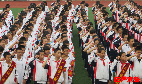 上午的集會慶典內(nèi)容別致,形式新穎,情感真摯,生動感人。本次活動也邀請了保安、保潔、生活老師和食堂員工,他們也以一個教育工作者的身份感受到了同學(xué)們對他們的敬意,感受到了“我們是一家人”的溫暖?!白饚熤亟蹋椭C師生”,表達(dá)了實驗中學(xué)師生間的真情厚意,表現(xiàn)了實驗中學(xué)的學(xué)生善于創(chuàng)新的性格,彰顯了“實驗人”的精神風(fēng)貌。