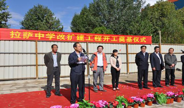 2012年8月25日上午,我校隆重舉行了拉薩中學(xué)改擴(kuò)建工程開工奠基儀式,出席儀式有西藏自治區(qū)教育廳副巡視員韓志洪,基教處鐘吉云處長、規(guī)劃處陳富順處長;拉薩中學(xué)黨總支書記扎西頓珠、校長李孝裕、副校長巴桑次仁、副校長林澤金、學(xué)校各科室負(fù)責(zé)人和江蘇教育設(shè)計(jì)院創(chuàng)作部主任周慶生、西藏銀創(chuàng)公司董事長宋仕銀、富順富達(dá)公司代表李召令及監(jiān)理單位代表等。儀式由巴桑次仁副校長主持。