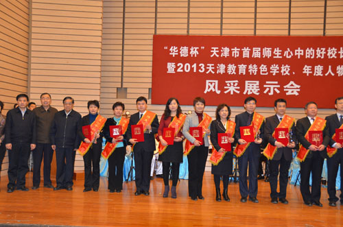 3月15日上午,天津市首屆師生心中的好校長暨2013年天津教育特色學(xué)校、年度人物頒獎(jiǎng)盛典在天津財(cái)經(jīng)大學(xué)隆重舉辦。我校李旭校長榮獲首屆師生心中的好校長榮譽(yù)。原人大副主任王鴻江同志、市教委巡視員、市教委副主任黃永剛同志、原市教衛(wèi)工委副書記楊希祿同志等市領(lǐng)導(dǎo)和各區(qū)縣教育局局長出席大會,并為獲獎(jiǎng)單位和個(gè)人頒獎(jiǎng)。我區(qū)鄭慶東局長應(yīng)邀出席大會,并為獲獎(jiǎng)學(xué)校頒獎(jiǎng)。