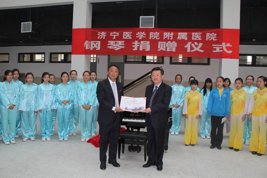 2013年10月19日上午9:00,在濟寧一中(北湖校區(qū))藝術(shù)樓一樓大廳舉行了濟寧醫(yī)學院附屬醫(yī)院向濟寧一中捐贈鋼琴儀式。此次儀式由濟寧一中副校長徐登利主持,到場嘉賓有:濟寧市委副市長張繼民,濟寧市教育局副局長伊立峰,濟寧市中區(qū)教育局局長楊建國,濟寧醫(yī)學院附屬醫(yī)院黨委書記陳東風,濟寧一中校長李巖、副校長賈慶偉、部分處室負責人及藝術(shù)教師代表和學生代表等。