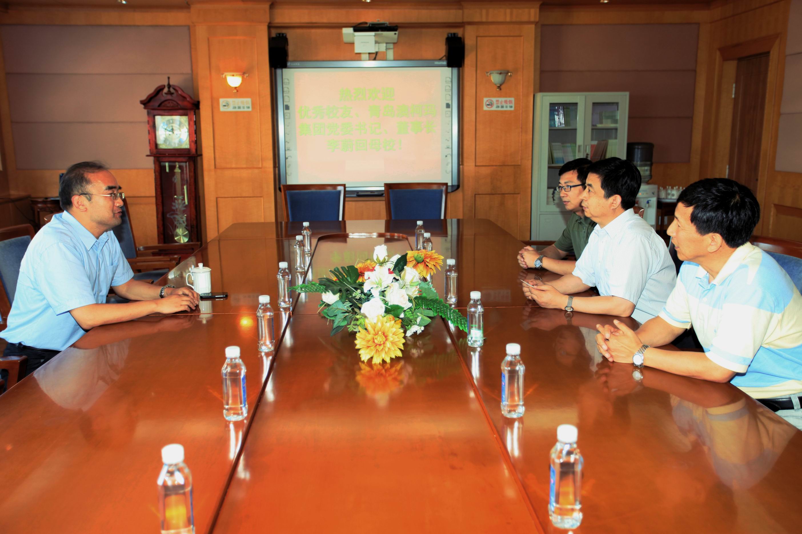 2014年7月7日下午,我校87屆高中校友、青島澳柯瑪集團(tuán)黨委書記、董事長李蔚回到母校參觀交流。我校書記、校長婁炳毅、副校長邢桂范、校慶辦主任鞠振國熱情接待了李蔚校友。