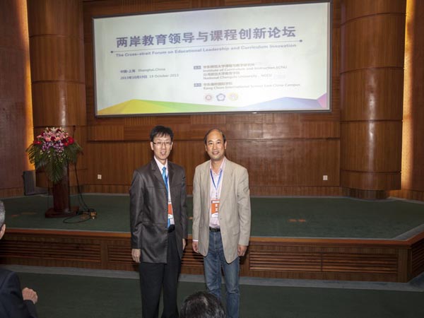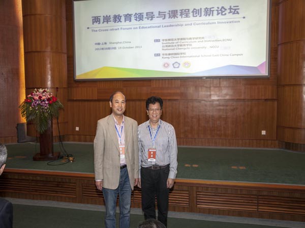2013年10月18~19日,盧明校長(zhǎng)應(yīng)邀出席由華東師范大學(xué)課程與教學(xué)研究所與臺(tái)灣政治大學(xué)教育學(xué)院聯(lián)合舉辦的“兩岸教育領(lǐng)導(dǎo)與課程創(chuàng)新論壇”,18日盧校長(zhǎng)出席了兩岸部分與會(huì)專家“圓桌會(huì)議”,19日發(fā)表了題為“學(xué)校課程建設(shè)的理念與行動(dòng)”的主題演講。