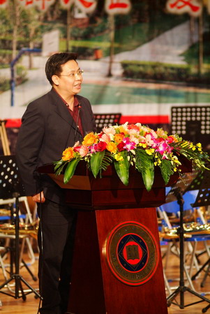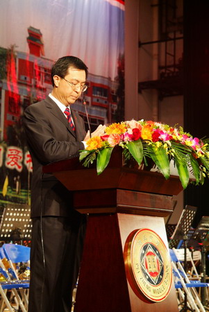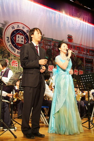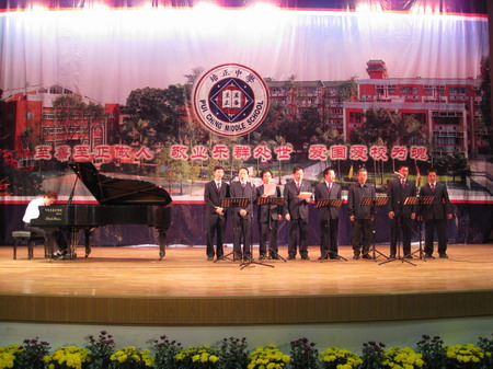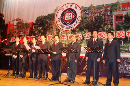 2007年12月7日下午,廣州培正中學(xué)慶祝建校118周年慶祝會在百周年紀(jì)念堂隆重舉行。會上,廣州市教育局陳茂林副局長、越秀區(qū)教育局蔡定基局長等領(lǐng)導(dǎo)發(fā)表了熱情洋溢的講話。呂超校長、鄒穗清級長、孫靜一同學(xué)分別代表師生用深情的語言表達(dá)了紅藍(lán)兒女對母校的熱愛和感恩之情,令人深受感染。接著,為培正服務(wù)10年,20年,30年的教職工上臺領(lǐng)取金牌,金燦燦的獎牌蘊(yùn)涵著紅藍(lán)兒女對盡心盡力為培正服務(wù)的園丁們深深的感激之情。值得一提的是,呂超校長也是其中一員,他累計(jì)已為培正服務(wù)20年,今后,培正中學(xué)還要在他的帶領(lǐng)下,走向更美好的明天。