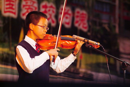 文藝匯演在兩位主持人江帆、陳蔚然老師輕松愉快的開場白中拉開了帷幕。首先由梁明輝老師帶領(lǐng)屢獲殊榮的培正管樂隊(duì)為大家演奏了兩首氣勢恢宏的樂曲《地球村》《喝彩》,博得全場熱烈的掌聲。接著,異彩紛呈的節(jié)目一個接一個:高三的謝錦超等四位同學(xué)為大家表演了吉他彈唱《愛我別走》,初三(4)班的王夢麗同學(xué)演唱的《美麗的侗鄉(xiāng)》帶大家領(lǐng)略侗鄉(xiāng)風(fēng)情;而有“培正歌王”之稱的田兆豐老師帶來的男高音獨(dú)唱《深深的愛你》更是把匯演推向一個小高潮;袁雨菲、彭文亭、唐曉彤、李可涵同學(xué)表演的舞蹈《花開花落》,初一(5)班的李嘉惠等同學(xué)表演的舞蹈《青春小鳥》,其美妙舒展的舞姿又給了觀眾們帶來了極高的視覺享受。匯演還有精彩的樂器表演,高三(10)班梁穎同學(xué),初三(1)班包韻婷同學(xué)帶來了葫蘆絲、古箏演奏《月光下的鳳尾竹》《彝族舞曲》,初一(5)班的林徑源同學(xué)表演了小提琴獨(dú)奏《新疆之春》,高三(4)班的陳威迪同學(xué)的鋼琴獨(dú)奏《不能說的秘密》。還有教工樂隊(duì)演奏的曲子《FOR YOU 》,引來全場雷鳴般的掌聲。同學(xué)們發(fā)現(xiàn)平時(shí)在講臺上諄諄教誨的老師搖身一變,成了臺上吹拉彈唱樣樣皆精的演奏者。老師們也用行動告訴學(xué)生,做個全面發(fā)展的人。