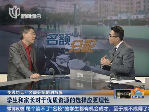4月7日晚,穆校長應(yīng)邀作客【上視新聞】的“夜線約見”欄目,訪談“名額分配的利與弊”。