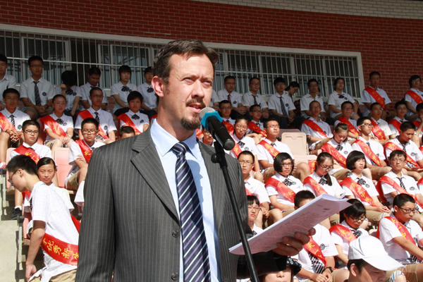 在隆重的升旗儀式后,來(lái)自2014屆高三(1)班的王韻文同學(xué)、高三年級(jí)主任趙紅慧老師和外教代表Frederick先生分別代表學(xué)生、教師和外教發(fā)言,沈茂德校長(zhǎng)向全體師生作了開(kāi)學(xué)講話。