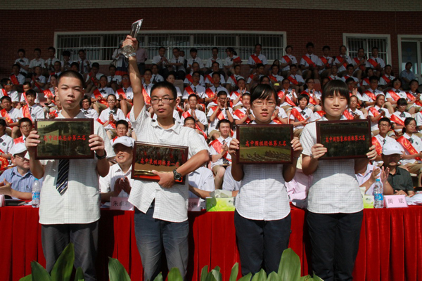 朱卓君副校長(zhǎng)、許芹副校長(zhǎng)和陳志剛副校長(zhǎng)分別宣布了2013年“中信實(shí)業(yè)銀行優(yōu)秀新生獎(jiǎng)”獲獎(jiǎng)學(xué)生名單,2013年少年班優(yōu)秀學(xué)業(yè)獎(jiǎng)表彰名單,省第八屆中學(xué)生棋類(lèi)比賽獲獎(jiǎng)名單和2103年江蘇省中學(xué)數(shù)學(xué)奧林匹克夏令營(yíng)獲獎(jiǎng)學(xué)生名單,學(xué)工處胡正良主任宣布了江蘇省天一中學(xué)2013年十大杰出畢業(yè)生名單、2013年榮獲省、市、區(qū)三好學(xué)生、優(yōu)秀學(xué)生干部和市、區(qū)先進(jìn)學(xué)生集體的名單,并舉行了頒獎(jiǎng)儀式。