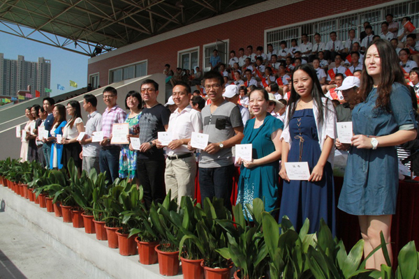 9月1日,天一中學(xué)3000多名師生共同出席了在學(xué)校操場(chǎng)舉行2013-2014學(xué)年開(kāi)學(xué)典禮暨第一次升旗儀式,典禮由天一中學(xué)黨委書(shū)記馮樸主持,學(xué)校校級(jí)領(lǐng)導(dǎo)、AP部學(xué)術(shù)校長(zhǎng)Frederick Voelkel、各處室、各年級(jí)正職主任在主席臺(tái)就坐。