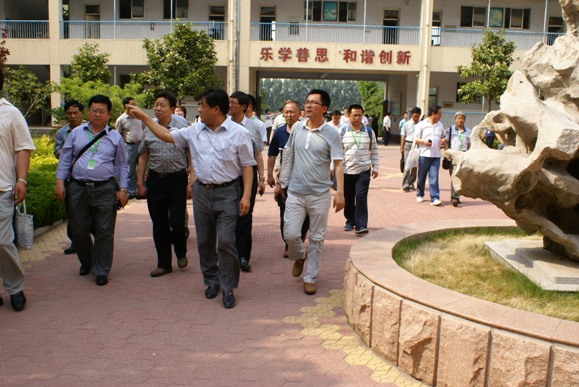 5月21日下午,“青葵花導(dǎo)師計(jì)劃”甘肅省教育局局長(zhǎng)研修班領(lǐng)導(dǎo)專家在甘肅省教育廳領(lǐng)導(dǎo)的帶領(lǐng)下一行128人來我校參觀考察,青州市教育局副局長(zhǎng)孫鼎梅、人事科副科長(zhǎng)邵國(guó)臣、我校校長(zhǎng)孫祥禮陪同考察,考察團(tuán)在孫祥禮校長(zhǎng)的介紹下,先后參觀了校園文化建設(shè)、學(xué)生餐廳、學(xué)生公寓、教學(xué)辦公區(qū)等,考察團(tuán)成員邊聽邊跟孫校長(zhǎng)交流。