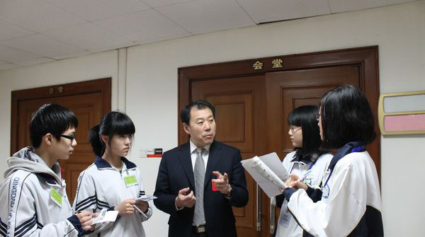 青島47中的吳佳梁同學(xué)第一個向?qū)O校長提問,“您好,孫校長,青島二中是一所令人憧憬的優(yōu)質(zhì)高中,青島二中學(xué)生的社會實踐大都是由學(xué)生們自發(fā)組織的。您認(rèn)為對我們初中生來說,是自發(fā)組織好還是學(xué)校帶領(lǐng)好呢?”這個問題也正是孫校長所提的議案中講到的,他介紹說:“社區(qū)活動是我們課堂之外的學(xué)習(xí)知識的文化平臺,最好是社區(qū)和我們一起組織,社區(qū)能大力支持學(xué)生實踐。”“在最初階段,學(xué)校為學(xué)生組織肯定比學(xué)生自發(fā)組織要好,經(jīng)過一段時間,有學(xué)校組織過渡到學(xué)生自發(fā)組織,這是最好的?!睂τ谏鐓^(qū)教育,孫校長認(rèn)為社區(qū)既是社會管理的基本單位,也是體現(xiàn)社會現(xiàn)實、透視社會運行情況的窗口。讓學(xué)生能從學(xué)校的象牙塔走進(jìn)現(xiàn)實生活,將所學(xué)與所用結(jié)合起來,使學(xué)生們的“綜合實踐”課具有實質(zhì)的意義。