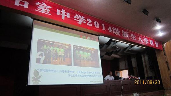 2011年8月30日上午,校長田間在逸夫樓大階梯教室對我校高2014級新生進(jìn)行入學(xué)教育,校長助理張顯國參加了會議。田校長首先向我校高2014級同學(xué)的到來表示了熱烈的歡迎,隨后,他從石室千年的歷史沉淀到近幾年學(xué)校的發(fā)展概況、從學(xué)校的教育教學(xué)成果到畢業(yè)于我校的著名校友等多方面向全體新高一的同學(xué)們?nèi)娼榻B了學(xué)校的概況,最后,田校長還希望我校高2014級的同學(xué)們志存高遠(yuǎn),追求卓越,轉(zhuǎn)換角色,適應(yīng)環(huán)境,提升素質(zhì),全面發(fā)展,學(xué)會擔(dān)當(dāng),心存感恩,以主人翁的意識融入到石室的生活、學(xué)習(xí)、活動中來,將石室的文化和精神融入進(jìn)自己的氣質(zhì)中去,不斷奮進(jìn)進(jìn)取,創(chuàng)造更多的輝煌。