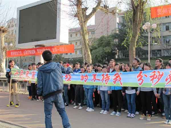 在“高考沖刺誓師大會(huì)”環(huán)節(jié)中,包括補(bǔ)習(xí)班在內(nèi)的22個(gè)高三班級(jí)在學(xué)生代表帶領(lǐng)下,高聲吶喊出各自心中的豪情,誓詞聲聲,久久回蕩在青春的校園。