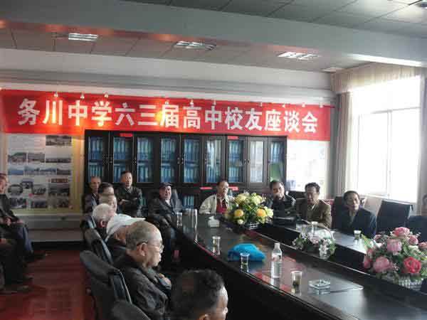 2013年10月8日上午,我校會(huì)議室歡歌笑語,喜氣盈人,務(wù)川中學(xué)1963屆高中畢業(yè)生申樸(原務(wù)川中學(xué)校長)、陳先民、李伯波等多名校友重返母校,舉行畢業(yè)50年聯(lián)誼會(huì)。學(xué)校領(lǐng)導(dǎo)田維貴校長、覃剛副校長等參加了聯(lián)誼會(huì)。田校長致辭深表歡迎,詳細(xì)介紹我校近年來的發(fā)展情況和未來十年的規(guī)劃藍(lán)圖,當(dāng)田校長談及新校區(qū)建設(shè)并于今年九月份投入使用時(shí),校友們露出洋溢的笑容,為學(xué)校的發(fā)展壯大感到高興。同時(shí)田校長希望各位校友長期關(guān)心支持務(wù)川中學(xué)的建設(shè)和發(fā)展,為母校興旺發(fā)達(dá)獻(xiàn)計(jì)獻(xiàn)策,貢獻(xiàn)力量。