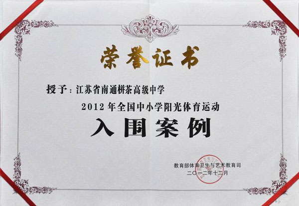 我校陽光體育運動案例《拳操鏗鏘 神舞飛揚》作為“入圍案例”受到國家教育部、體育總局表彰,王東寧校長應(yīng)邀受獎。據(jù)悉,江蘇省獲此殊榮的學(xué)校僅7家,其中高中僅2家。該獎項的獲得是我校素質(zhì)教育的又一重大成果。