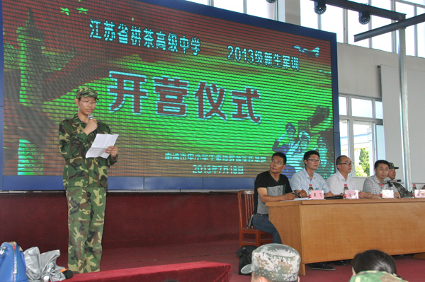 7月18日下午4時(shí),軍訓(xùn)開營儀式在基地大禮堂隆重召開。儀式上,高一新生袁靖杰同學(xué)代表全體參訓(xùn)學(xué)員發(fā)言,曹越同學(xué)帶領(lǐng)全體學(xué)員作軍訓(xùn)宣誓,叢翔副校長發(fā)表講話。他希望同學(xué)們能珍惜此次鍛煉身體、磨練意志的難得機(jī)會(huì),認(rèn)真學(xué)習(xí),服從命令,聽從指揮。并勉勵(lì)同學(xué)們發(fā)揚(yáng)艱苦奮斗的精神,在軍訓(xùn)中不斷磨練自己、提升自己,爭(zhēng)做軍訓(xùn)標(biāo)兵,為高中三年乃至一生的發(fā)展打下堅(jiān)定的基礎(chǔ)。政教處副主任陸春建、團(tuán)委書記吳真勇、保衛(wèi)處主任助理袁飛以及全體軍訓(xùn)班主任出席了開營儀式。