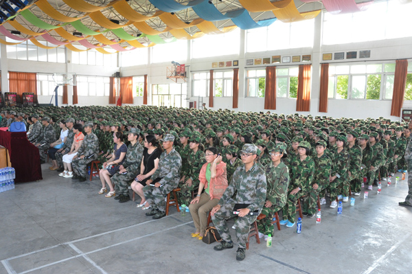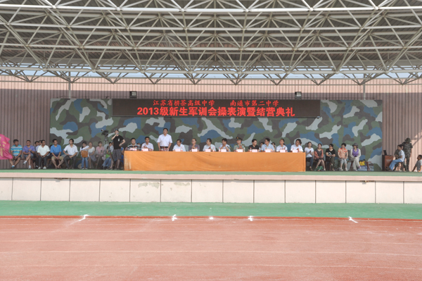 7月24日上午,我校2013級(jí)高一新生軍訓(xùn)結(jié)營儀式暨匯報(bào)表演在基地操場(chǎng)上隆重舉行。校長王東寧、副校長叢翔、校長助理符鈺、政教處副主任陸春建、團(tuán)委書記吳真勇、保衛(wèi)處主任助理袁飛出席了結(jié)營儀式。在莊嚴(yán)雄壯的軍歌聲中,王東寧校長在軍校領(lǐng)導(dǎo)的陪同下,對(duì)我校15個(gè)軍訓(xùn)中隊(duì)進(jìn)行了檢閱。15個(gè)整齊方隊(duì)在教官的指揮下依次走過主席臺(tái),整齊的隊(duì)列立如勁松,雄渾的吶喊響似驚雷,展現(xiàn)了本屆高一新生蓬勃向上的朝氣與積極進(jìn)取的精神。最后,在此起彼伏的掌聲中開始了整齊有力的軍體拳匯報(bào)和打背包表演,整齊的隊(duì)伍、挺拔的身姿、嫻熟的動(dòng)作贏得了陣陣熱烈的掌聲。