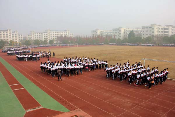 12月5日上午,隨著運動員進行曲的響起,全校76個班級所有學生奔向運動場,迅速集合在跑操地點,舉行了陽光體育冬季長跑活動啟動儀式。