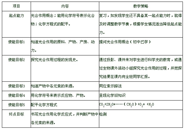 下面以高二生物“光合作用的過程”為例,來體驗(yàn)行為目標(biāo)對教學(xué)的導(dǎo)向作用。