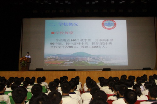 最后,王校長(zhǎng)簡(jiǎn)明扼要地向新生們介紹了如何評(píng)價(jià)一所學(xué)校的高考成績(jī)。通過高一學(xué)生入校成績(jī)與高三畢業(yè)時(shí)高考成績(jī)對(duì)比、高考指標(biāo)的完成情況、入讀國(guó)內(nèi)一流大學(xué)人數(shù)以及教研室每年的教學(xué)質(zhì)量評(píng)價(jià)這四方面的數(shù)據(jù),讓新生們通過一個(gè)客觀的角度看到了一中堅(jiān)的實(shí)實(shí)力,更加堅(jiān)定了自己對(duì)一中的選擇。