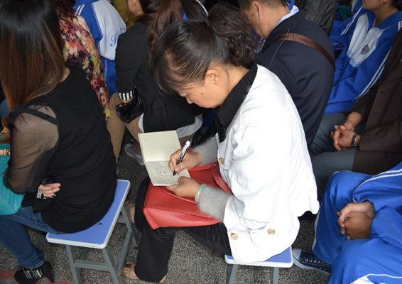 參會家長認真做好筆記