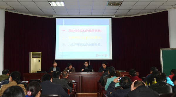 陳志紅同志的專題學(xué)習(xí)報(bào)告,著重講解“學(xué)校群眾路線實(shí)踐教育活動(dòng)方案與市教育局領(lǐng)導(dǎo)講話要點(diǎn)”。報(bào)告結(jié)合學(xué)校教育教學(xué)實(shí)際,就活動(dòng)的主題、總要求、活動(dòng)階段作了部署。他還結(jié)合自身學(xué)習(xí)體會(huì),重點(diǎn)匯報(bào)了教育局鄭志華局長的報(bào)告主要內(nèi)容:1.統(tǒng)一思想認(rèn)識,切實(shí)增強(qiáng)自覺性;2.深入剖析四風(fēng),注意把握準(zhǔn)確性;3.抓住關(guān)鍵環(huán)節(jié),保障活動(dòng)有序性;4.把握六個(gè)關(guān)系,確保教育實(shí)效性。他指出,嚴(yán)中新校區(qū)群眾路線教育有沒有成效,關(guān)鍵看教育教學(xué)質(zhì)量有沒有提高,看高考含金量有沒有提升,看建德人民群眾對學(xué)校教育教學(xué)質(zhì)量的滿意程度。