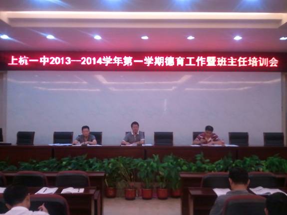 9月17日下午,我校召開(kāi)2013--2014學(xué)年德育工作暨班主任工作培訓(xùn)會(huì)議。會(huì)議表彰了上學(xué)年“德育工作”“安全工作”先進(jìn)個(gè)人,簡(jiǎn)要梳理了本學(xué)期工作要點(diǎn),組織學(xué)習(xí)了《上杭一中班主任工作暫行規(guī)定》《上杭一中班主任工作考評(píng)細(xì)則及獎(jiǎng)勵(lì)方案》等材料。高錦堂副校長(zhǎng)作了《扎實(shí)工作,努力推進(jìn)我校德育工作上新臺(tái)階》主題講話,溫利平校長(zhǎng)希望全校德育工作者在“導(dǎo)”“管”二字上狠下功夫,在學(xué)生全面健康成長(zhǎng)中真正起到導(dǎo)師的作用。