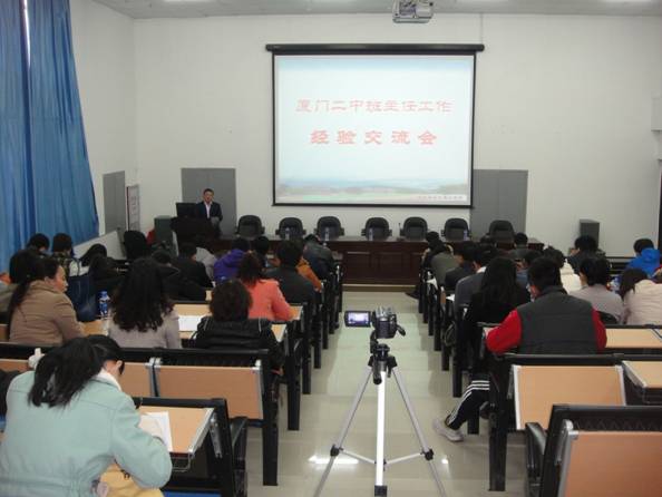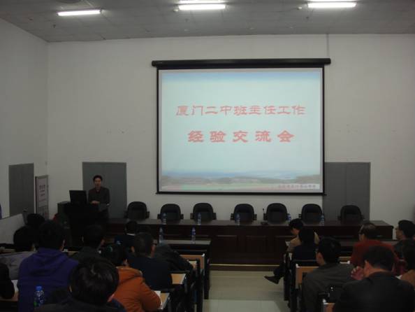 會(huì)議由德育處馬兆春主任主持,首先邀請(qǐng)了2013廈門市“十佳班主任”獲獎(jiǎng)?wù)?、外?guó)語(yǔ)學(xué)校的江濱老師和大家分享了他寶貴的工作經(jīng)驗(yàn)。江濱老師從教25年,擔(dān)任段長(zhǎng)班主任23年,他在班主任工作中的許多細(xì)節(jié)令大家感動(dòng):比如每天都比學(xué)生早到校,擔(dān)任段長(zhǎng)能認(rèn)出年級(jí)的每一位同學(xué),在和后進(jìn)生交流的時(shí)候都注意場(chǎng)合,讓同學(xué)坐下......江濱老師在班級(jí)管理上也很有經(jīng)驗(yàn),建設(shè)積極向上班級(jí)的秘訣是“五個(gè)特別”,即制定“特別有禮貌”“特別有理想”“特別守紀(jì)律”“特別樂(lè)奉獻(xiàn)”“特別有作為”的工作目標(biāo),而且特別注意對(duì)學(xué)生學(xué)習(xí)興趣和學(xué)習(xí)潛能的激發(fā),在不同時(shí)期通過(guò)介紹學(xué)習(xí)方法激發(fā)學(xué)習(xí)潛能的材料,讓成績(jī)優(yōu)異的同學(xué)在班級(jí)介紹自己的學(xué)習(xí)方法等途徑來(lái)提高同學(xué)的自主學(xué)習(xí)能力。他的發(fā)言引起了在場(chǎng)老師們的共鳴與思考。