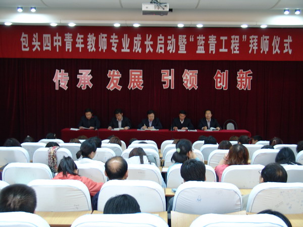 為貫徹落實(shí)學(xué)?!笆濉卑l(fā)展規(guī)劃,努力實(shí)踐“塑造特色、培育精品、追求幸?!钡霓k學(xué)理念。近年來,隨著學(xué)校教師的新老更替,越來越多的青年教師充實(shí)到我校的教師隊(duì)伍中,他們的到來,不僅僅是注入了新鮮的血液,更是我校發(fā)展的骨干和主力軍。他們思想政治素質(zhì)的好壞、業(yè)務(wù)水平的高低直接關(guān)系到學(xué)校的生存和發(fā)展,為建造一支師德高、業(yè)務(wù)精、理念新的青年教師隊(duì)伍,提高我校的辦學(xué)水平,4月28日下午,我校教師在五樓會(huì)議室召開了“包頭四中青年教師專業(yè)成長(zhǎng)啟動(dòng)暨‘藍(lán)青工程’拜師儀式”大會(huì)。大會(huì)由劉高峰副校長(zhǎng)主持,陳剛書記宣讀了《包頭市第四中學(xué)青年教師專業(yè)發(fā)展實(shí)施方案》。高永孝主任宣讀了學(xué)校的師徒名單。新結(jié)對(duì)的8對(duì)師徒簽署了《包頭市第四中學(xué)“藍(lán)青工程”師徒結(jié)對(duì)子協(xié)議書》。姜彩霞、董晨老師分別代表教壇老、新人發(fā)言,她們的發(fā)言情感真摯,表示在傳幫帶的過程中互相學(xué)習(xí),互相幫助,共同提高。吳生強(qiáng)校長(zhǎng)最后做了總結(jié)講話,從四個(gè)方面對(duì)新教師提出中肯的意見。