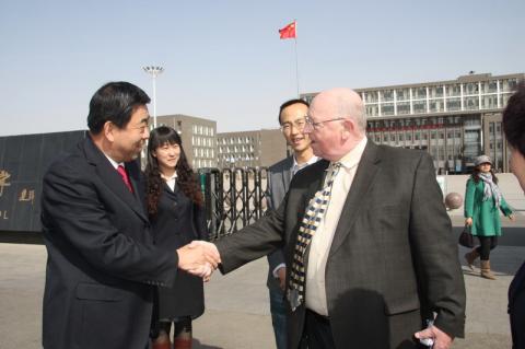 2012年3月29日,美國(guó)賓夕法尼亞州愛(ài)爾米塔什地區(qū)肯尼迪天主教中學(xué)(Kennedy Catholic High School)校長(zhǎng)愛(ài)德溫(Edwin)先生及其陪同來(lái)我校參觀訪(fǎng)問(wèn),交流學(xué)習(xí),武石平校長(zhǎng)、郝炯副校長(zhǎng)及秦建軍副校長(zhǎng)親自接待并表示熱烈歡迎。在武校長(zhǎng)和郝校長(zhǎng)的陪同下,愛(ài)德溫先生一行參觀了美麗的校園,了解了我校的發(fā)展歷程和我校的基本校情,感嘆我校的辦學(xué)理念之新和發(fā)展速度之快,同時(shí)對(duì)我校的現(xiàn)代化教學(xué)設(shè)施贊嘆不已。